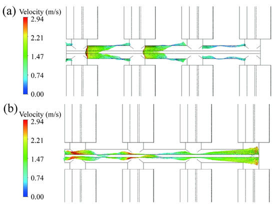 Airflow distribution at the corridor window: (a) Bottom window; (b) Top window.