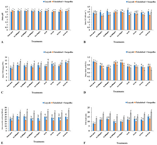 - Liaquat, M.; Ali, I.; Ahmad, S.; Malik, A.M.; Ashraf, H.M.Q.; Parveen, N.; Tareen, M.J.; Saeed, T.; Shah, S.H.; Zulfiqar, B. Efficiency of exogenous zinc sulfate application reduced fruit drop and improved antioxidant activity of ‘Kinnow’mandarin fruit. Braz. J. Biol. 2021, 83, e244593. [Google Scholar]