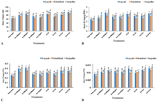 Arshad, I.; Saleem, M.; Akhtar, M.; Shani, M.Y.; Farid, G.; Jarecki, W.; Ashraf, M.Y. Enhancing Fruit Retention and Juice Quality in ‘Kinnow’ (Citrus reticulata) Through the Combined Foliar Application of Potassium, Zinc, and Plant Growth Regulators. Horticulturae 2024, 10, 1245. https://doi.org/10.3390/horticulturae10121245