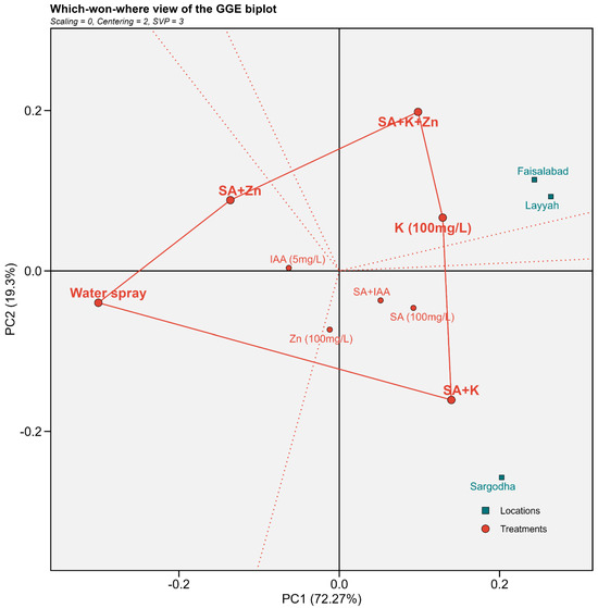 - Rahmati, S.; Azizi-Nezhad, R.; Pour-Aboughadareh, A.; Etminan, A.; Shooshtari, L. Analysis of Genotype-by-Environment Interaction Effect in Barely genotypes Using AMMI and GGE biplot methods. Heliyon 2024, 10, e38131. [Google Scholar] [CrossRef]