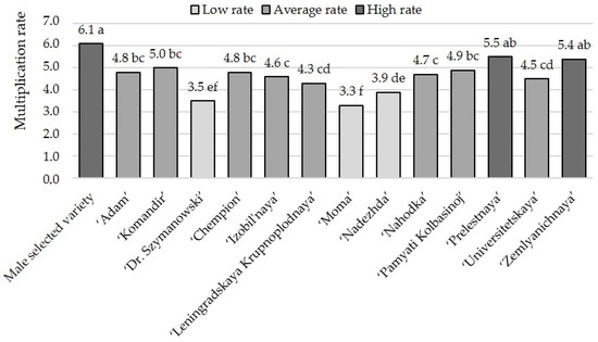 - Molkanova, O.I.; Koroleva, O.V.; Stacheeva, T.S.; Krakhmaleva, I.L.; Meleshchuk, E.A. Improvement of clonal micropropagation technology of valuable fruit and berry crops varieties for commercial conditions. Achiev. Sci. Technol. AIC 2018, 32, 66–69. (In Russian) [Google Scholar] [CrossRef]