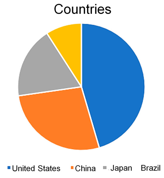 Most of the studies were conducted in the United States (5), followed by China and Japan, which had two articles each published on the use of glycerol as an inducer of disease resistance. In Brazil, only one study was found (Figure 3).