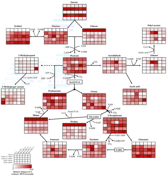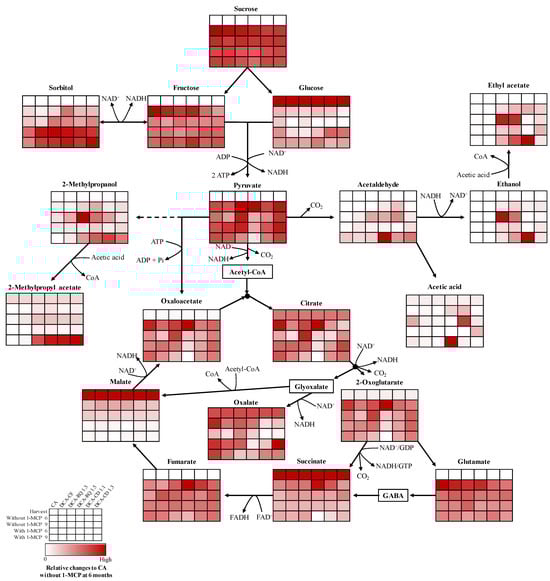 3.3. Effects of CA, DCA and 1-MCP on Metabolite Changes over the Storage Period