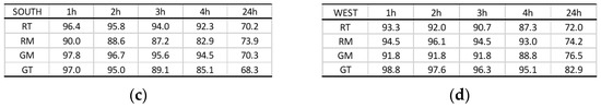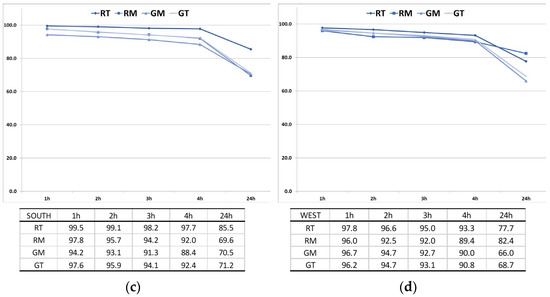 Dehydration rate in September (a) in the north zone, (b) in the east zone, (c) in the south zone, and (d) in the west zone of the experimental structure.