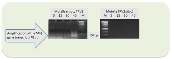For Motelle plants, it was confirmed by semiquantitative PCR that the empty TRV vector did not alter the expression of the Mi-1 gene, as transcript levels were similar in infiltrated and non-infiltrated plants (Figure 2).