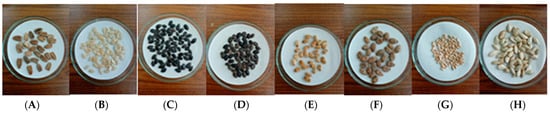In this study, seed viability was assessed using a float test, where 100 seeds from each of eight cucurbit varieties (Figure 1), purchased from a local hypermarket, were submerged in distilled water in a 200 mL beaker for 5 to 10 min. The viability of seeds was determined by their buoyancy, with floating seeds considered non-viable and sinking seeds viable, and showed a viability percentage ranging from 90–95%. Concurrently, fresh leaves and roots of H. indicum (Figure 2) were collected from the botanical garden at the University of Chittagong. All experimental procedures were carried out at the Department of Botany, University of Chittagong, Chattogram, Bangladesh.