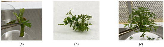 - Murashige, T.; Skoog, F.A. Revised medium for rapid growth and bioassays with tobacco tissue cultures. Physiol. Plant. 1962, 15, 473–497. [Google Scholar] [CrossRef]