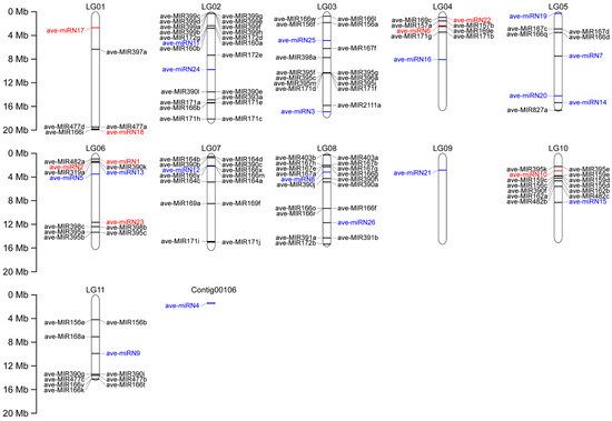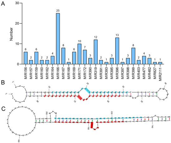3.2. Chromosomal Localization of Identified miRNAs in A. venetum