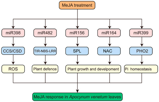 Tan, J.; Han, X.; Liu, Q.; Dorjee, T.; Zhou, Y.; Sun, H.; Gao, F. Joint Analysis of Small RNA and mRNA Sequencing Unveils miRNA-Mediated Regulatory Network in Response to Methyl Jasmonate in Apocynum venetum L. Horticulturae 2024, 10, 173. https://doi.org/10.3390/horticulturae10020173