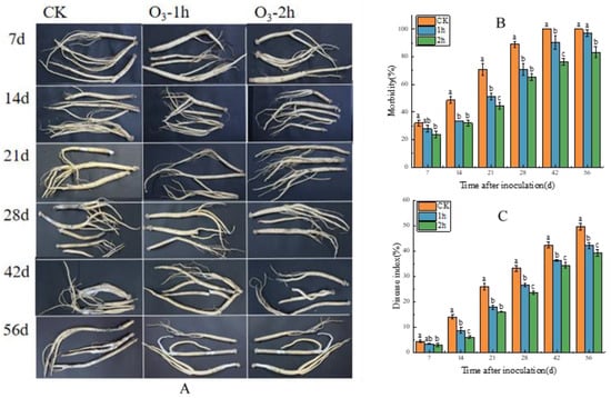 3.1. Effect of Ozone Treatment on the Morbidity and Disease Development in the Inoculated C. pilosula during Different Storage Periods
