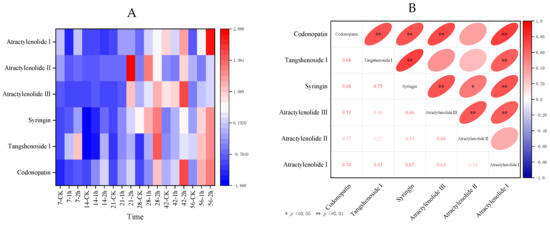 2.2.5. Analysis of the Main Active Ingredients of C. pilosula Inoculated with A. elegans during Different Storage Periods