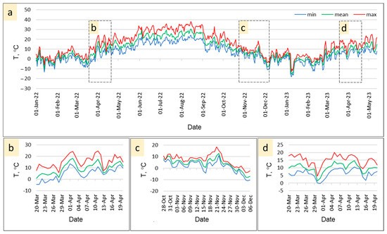 Figure 1 presents the seasonal dynamics of daily air temperatures from 22 January 2022 to 23 May 2023.