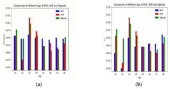 The performance of the classification algorithm was examined when the price lag period was 1 to 8 days. According to the test results, the optimal number of lag days selected in this study was 3. That is, the volatility of t − 1, t − 2, and t − 3 was used to predict the price of the t-th day (