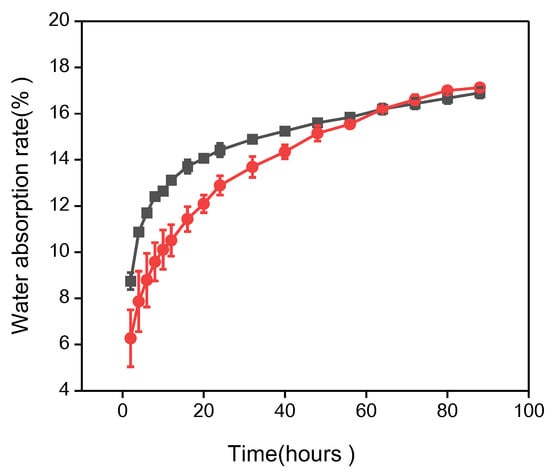 The changes in water absorption rate (mean ± SE for three replicates) of Chinese olive seeds with or without sulfuric acid corrosion. The seeds with sulfuric acid corrosion are represented by ■, while the seeds without corrosion are represented by ●.