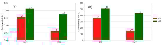 | Vessel Density [n mm−2] | Vessel Area [μm2 mm−2] | Vulnerability Index (VI) [μm mm−2] | Cumulative Sap Flow [L] | ||