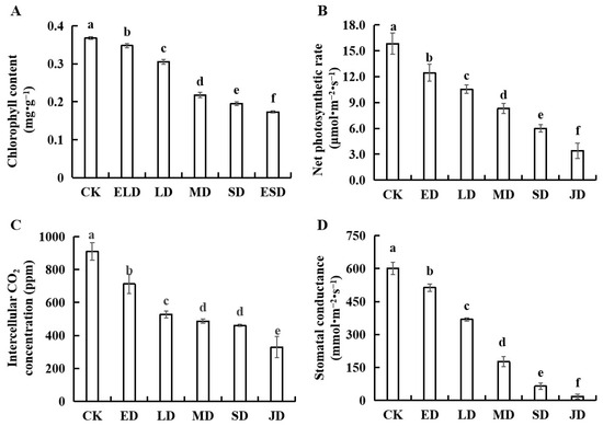 - Sun, X.; Zhang, X.; Ding, S.; Li, W.; Guo, C.; Wang, D.; Liu, X.; Tang, X. Responses of physiological and photosynthetic characteristics in leaves of two Malus cultivars to drought stress. J. Northeast For. Univ. 2019, 47, 28–32+66. [Google Scholar]