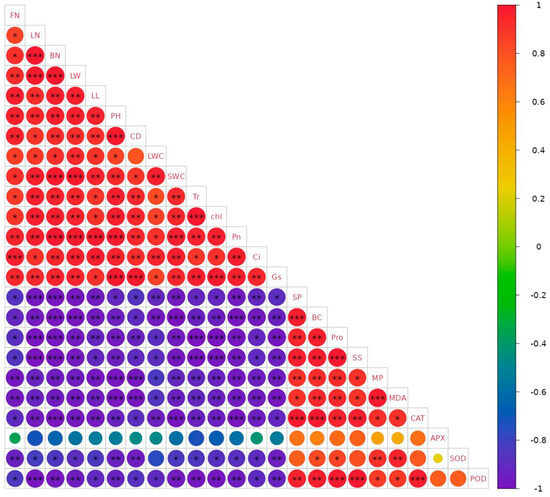 3.6. Correlation Analysis between the Indexes of Drought Resistance of B. semperflorens
