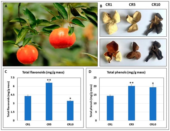 - Wang, G.; Chen, S.; Gu, G.; Qiu, J.; Chen, Y.; Jia, Z.; Tang, H. Comparison of the content of flavonoids, total phenols, and carotenoids and antioxidant activity in guang Citri reticulatae pericarpium during the aging time. Pharmacogn. Mag. 2020, 16, 375–381. [Google Scholar]