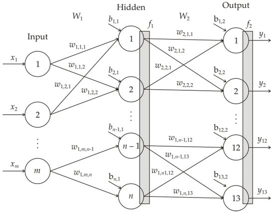 where Y represents the output value, f1 and f2 represent the transfer function in the hidden and output layer, and X represents the matrix of the input layer [].