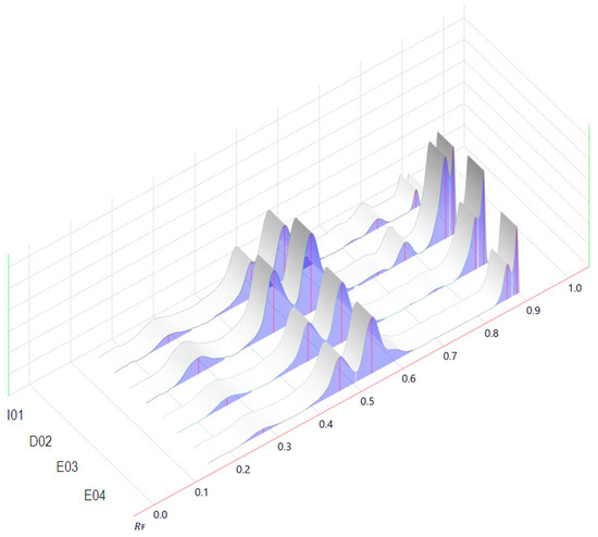 The images of the HPTLC plate captured were converted to videodensitograms. The effect of the extraction conditions and solvents on the qualitative profiles of oregano solvents can be observed in Figure 6 and Figure 7.