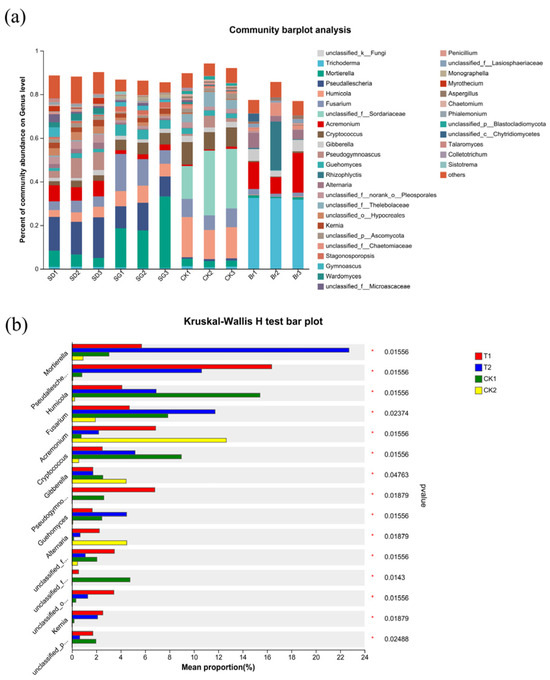 | Treatment | Bacteria (×105·CFU·g−1) | Fungi (×103·CFU·g−1) | Bacteria/Fungi |