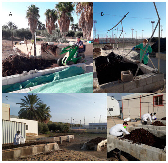 As required by Spanish legislation on fertilizers, the levels of Escherichia coli and Salmonella in the compost were determined using the recommended methods (RD 506/2013) [84]; the material was sanitized and was determined to meet the requirements for Salmonella and E. coli.