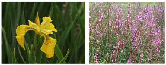 Iris pseudacoru and Lythrum ancep (Figure 1) are water-purifying ornamental plants commonly used near watersides or in garden ponds. Since they do not participate in the ecological food chain, they can help reduce the risk of pollutants entering the food chain. These plants exhibit a wide temperature range for growth. They are highly adaptable to various environmental stress conditions, making them particularly resilient and beneficial for diverse environments.