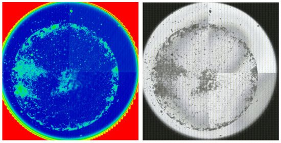 Samples collected from the cultivation stand were subjected to treatments with varieties of PE powders measuring 46 µm and 140 µm, at concentrations of 1 mg/L. Three samples were obtained from the same box. Each sample was placed in 500 mL beakers and filtered under reduced pressure through a metal mesh filter (20 µm, 25 mm diameter). The filter was divided into four compartments across the front of the filter using an Omnic Picta Program (Thermo Fisher Scientific Inc., Waltham, MA, USA) to obtain the IR spectra from all areas by ultra-fast mapping. The IR spectra obtained from each compartment were library-matched with the plastic IR spectra and considered as plastics when the matching rate was more than 70%, and quantitative data were collected by counting (Figure 5).