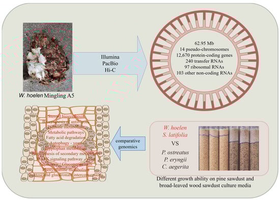 Yang C, Xiao D, Jiang X, Li Y, Liu X, Lin H, Liu C, Ma L. Chromosome-Scale Genome Assembly Provides Insights into Fresh Pine Wood Decay Strategies of the Wolfiporia hoelen. Horticulturae. 2024; 10(7):703. https://doi.org/10.3390/horticulturae10070703