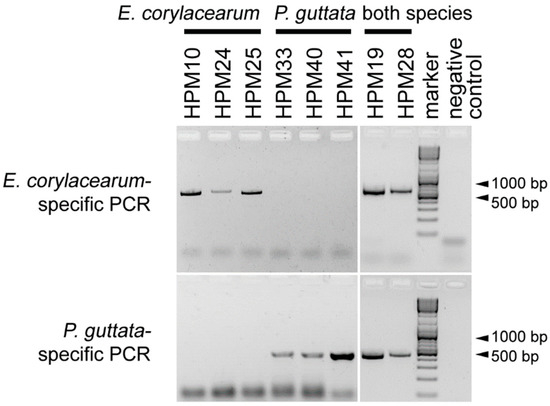 In this study, we aimed to develop a species-specific PCR (ssPCR) for the molecular-based differentiation of E. corylacearum and P. guttata. Additionally, we aimed to investigate the occurrence of the fungus in Hungary using both the newly developed ssPCR method and morphological analysis.
