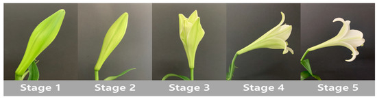 The material used in this study was the Lilium longiflorum “Woori Tower” cultivar harvested at the bud stage in January 2023 from a farm located in Asan, Chungcheongnam-do, South Korea.