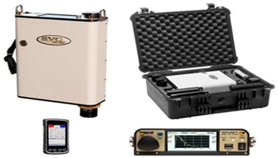The determination time of hyperspectral reflectance is consistent with the water content of the plants. The sampling dates for Kexin No. 1 and Spunta were 18, 37, 52, 73, and 90 DAE. Before sampling, the hyperspectral reflectance of the plant canopy was measured using an SVC-1024i Ground Spectrometer (Spectra Vista Corporation, Poughkeepsie, NY, USA) with a working range of 337–2521 nm (Figure 1). On a sunny day with little or no wind, the reflectance at a height of 40–60 cm above the potato plant canopy was measured at 10:00 a.m. and 14:00 p.m. To obtain representative canopy reflectance, five sampling points were selected for each treatment, and 10 spectra images were collected from each sampling point. Then, 50 spectra images were processed and averaged. In addition, during the measurement process, a standard whiteboard was used to promptly correct the “before” and “after” observation results for each group of targets.