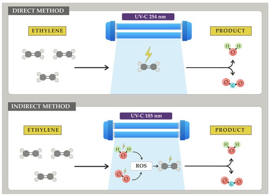 - Pathak, N.; Caleb, O.J.; Rauh, C.; Mahajan, P. V Efficacy of Photocatalysis and Photolysis Systems for the Removal of Ethylene under Different Storage Conditions. Postharvest Biol. Technol. 2019, 147, 68–77. [Google Scholar] [CrossRef]