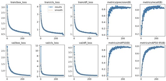 In order to provide further insight into the model’s performance, we have plotted the visualized training result curves and detection heatmaps of the improved model, as shown in Figure 10 and Figure 11. As can be seen from Figure 10, the model gradually begins to converge and stabilize after 100–120 epochs of loss, and there is no incremental increase in the loss curve at the end. With regard to the precision, recall, mAP50 and mAP50-95 curves, it can be observed that they begin to converge after 90 epochs, with a more pronounced effect.