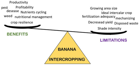 Overview of the benefits and limitations of intercropping in banana plantations.