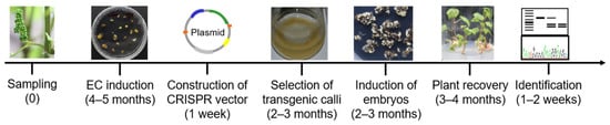 Time schedule of Agrobacterium-mediated CRISPR editing in grapevine.