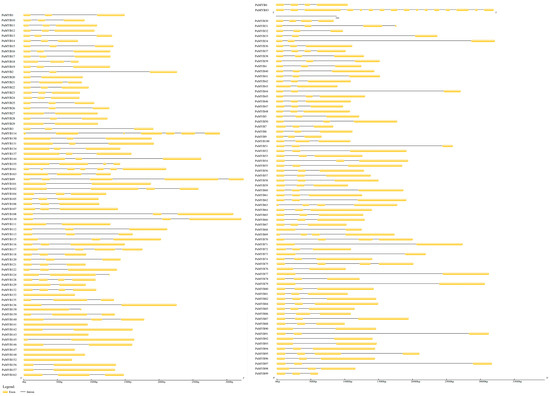 Gene structure of the ‘NanGuo’ pear R2R3-MYB gene, where black lines are introns and yellow blocks are exons.