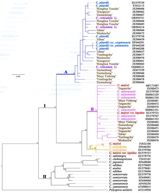 | Species | C. pitardii | C. reticulata 2x | C. saluenensis | C. polyodonta | C. edithae | C. japonica |
