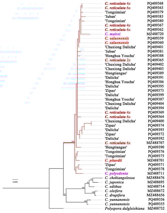 4.2. Phylogenetic Position of Diploid Camellia reticulata