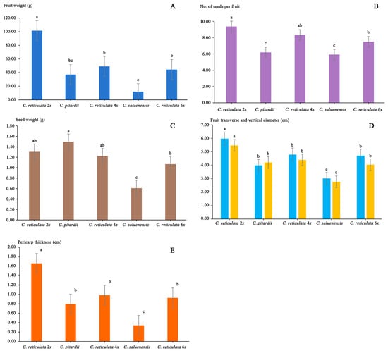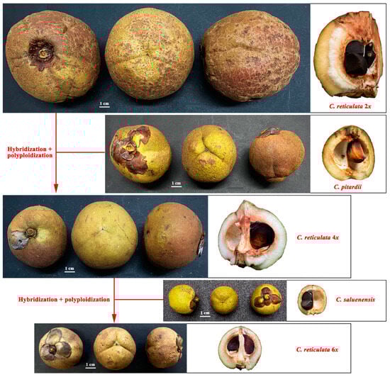 3.3. Fruit Morphology Comparison of Diploid Camellia reticulata and Congeneric Species