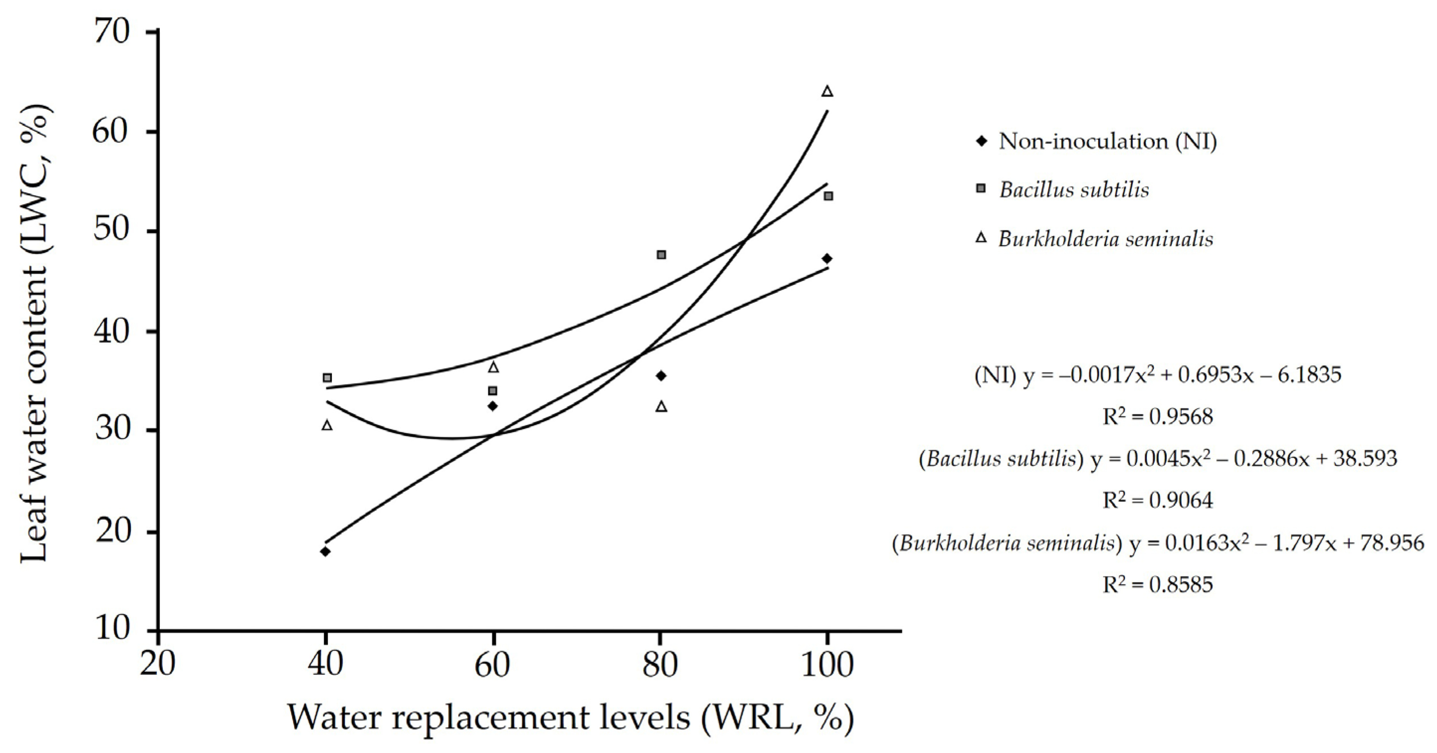 - Taiwo, M.O.; Akintokun, A.K. Plant growth-promoting bacteria delayed wilting and improved tomato yield when grown under water stress condition. J. Plant Nutr. 2025, 48, 1931–1949. [Google Scholar] [CrossRef]
