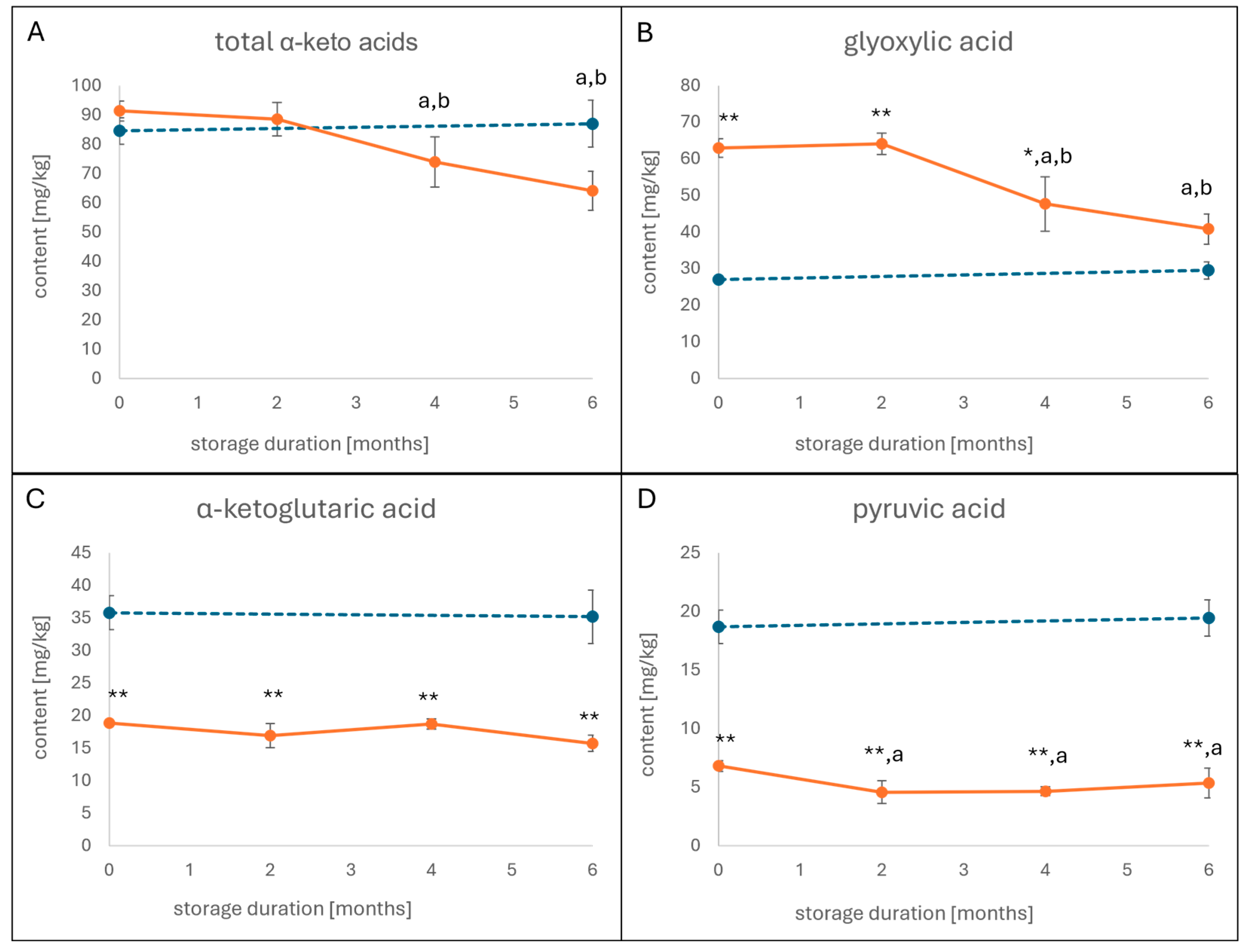 3.1. Changes in the α-Keto Acids During Drying and Storage