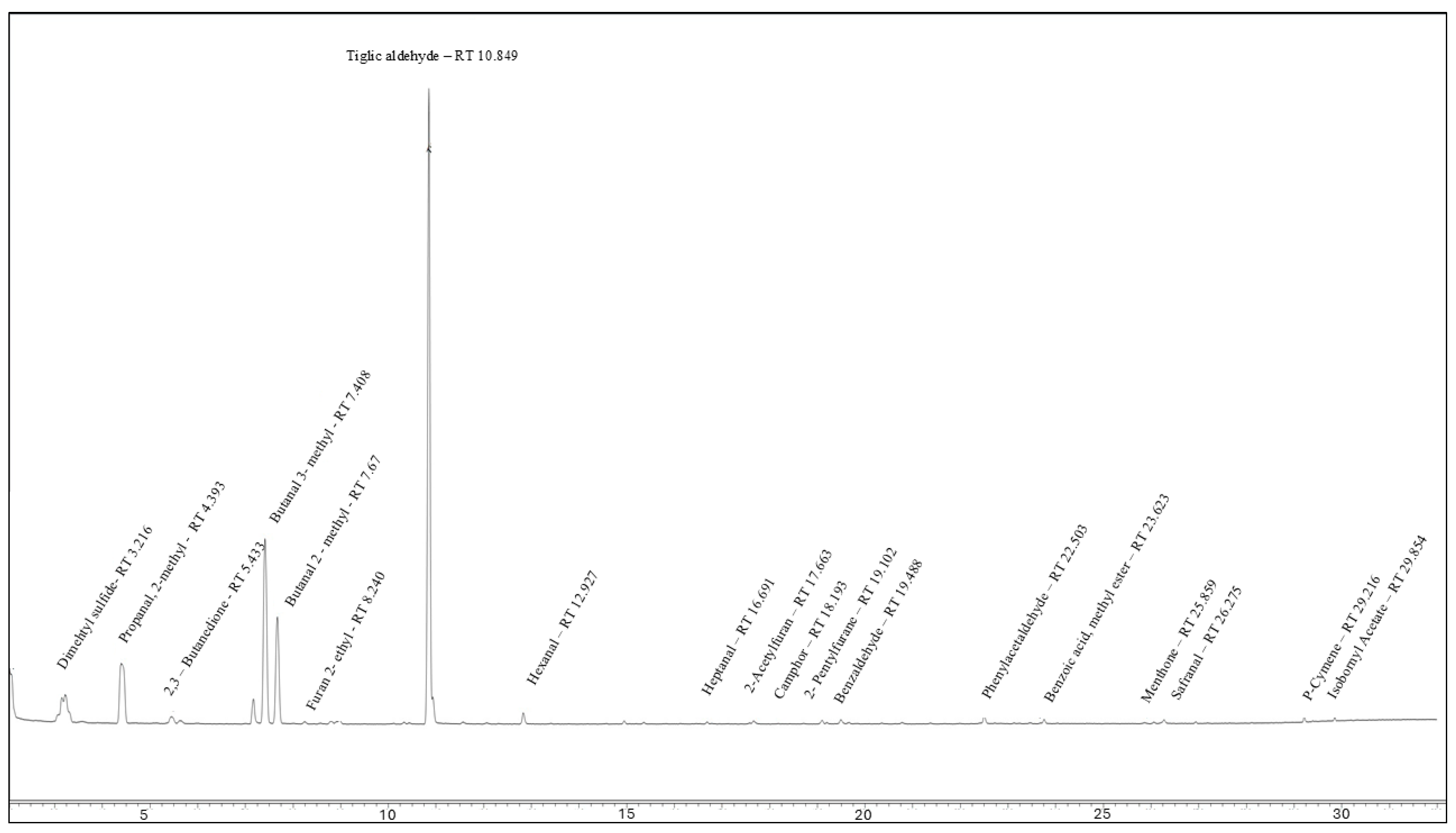 2.4. Semi-Quantitative and Quantitative Analysis of Volatile Constituents