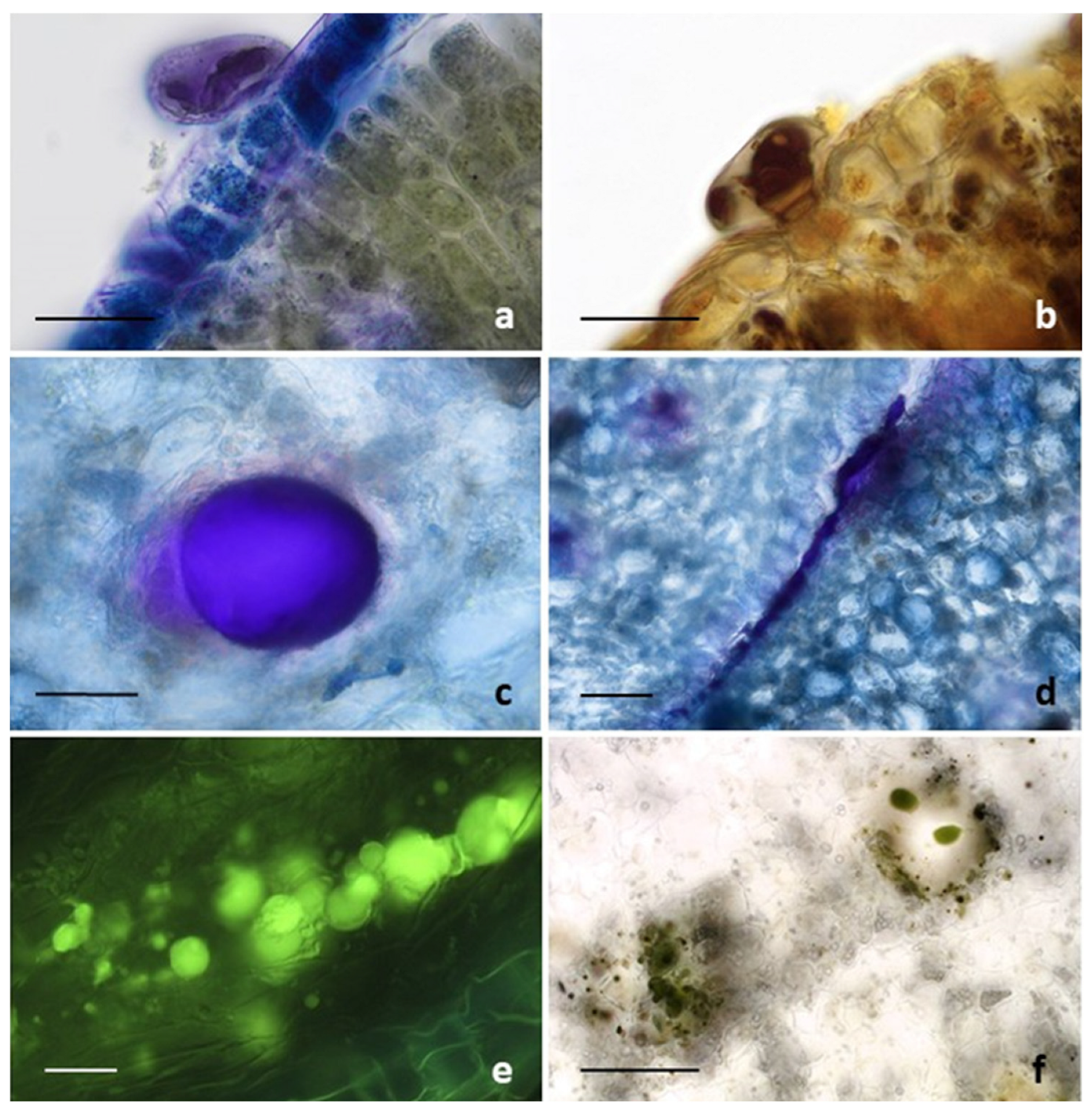 | Stainings | Target-Compounds | Biseriate Glands | Secretory Ducts |