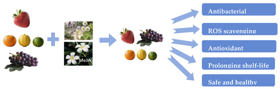 Preharvest or postharvest MeJA application effectively boosted antioxidant capacity and phenolic content in fresh fruit. These enhancements prolonged shelf life, improved fruit quality, and mitigated CI [68,69].
