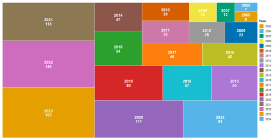 All of the publications on fruit preservation with plant extracts or elicitors used in this bibliometric analysis were research articles in English from 2005 to 2025. The data was screened according to countries/territories to identify the key contributors in this field. Changes in the number of yearly publications in specific areas, to some extent, can indicate shifts in focus. Figure 3 shows that the numbers of research publications per year on fruit preservation by treatment with plant extracts or elicitors, has steadily increased from 2005 to 2025.