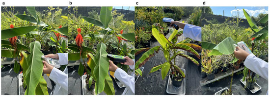 - Cruz-Lara, D.A.; Polanco-Díaz, E.; Deaquiz-Oyola, Y.A.; Betancourt-Vásquez, M.; Rodríguez-Yzquierdo, G.A. Evaluation of the Effect of Biostimulant Substances on the Growth and Physiological Response of Dominico-Hartón Plantain (Musa AAB). Rev. Colomb. Cienc. Hortícolas 2024, 18. [Google Scholar] [CrossRef]