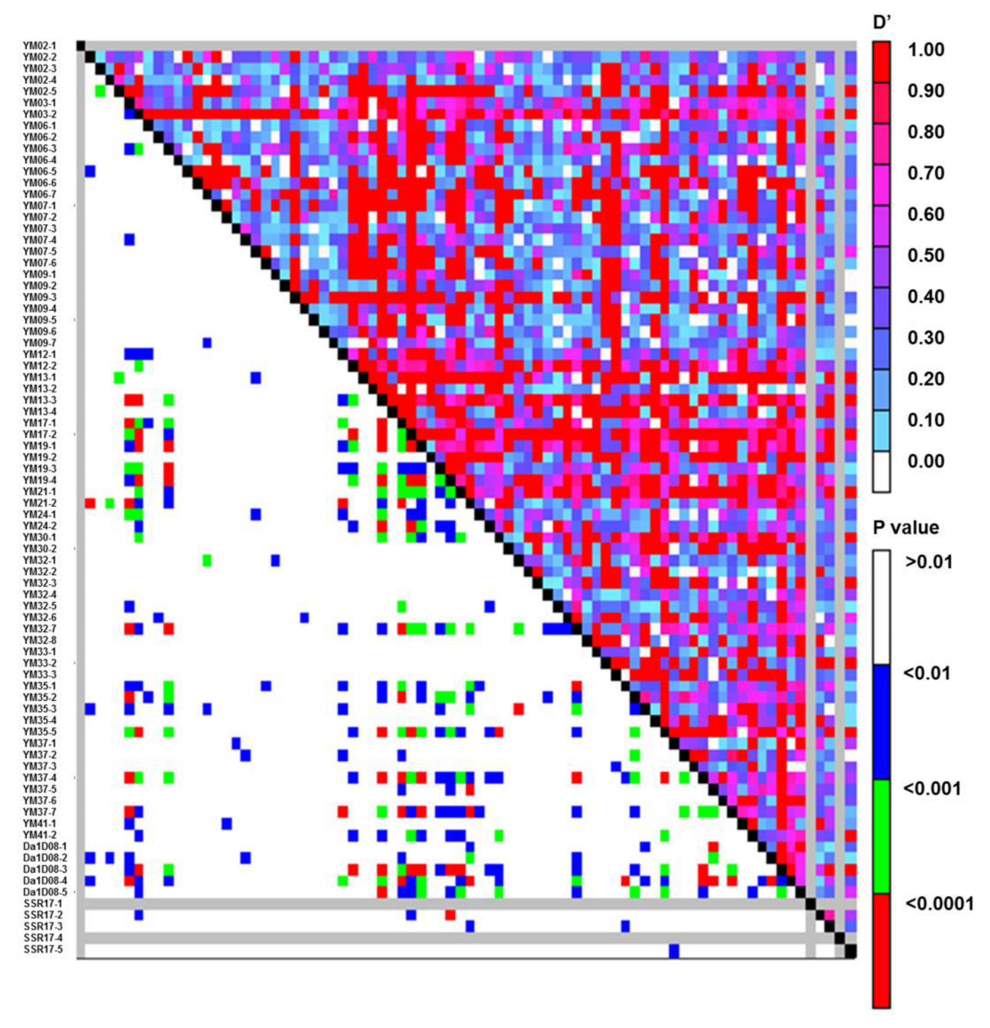 3.5. Linkage Disequilibrium Analysis