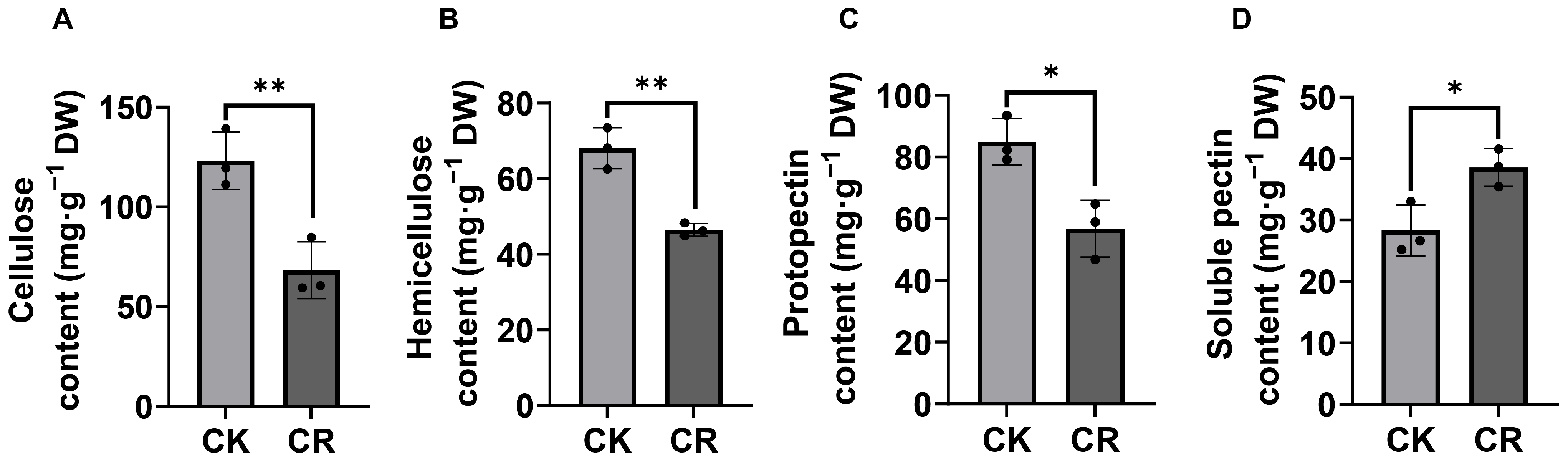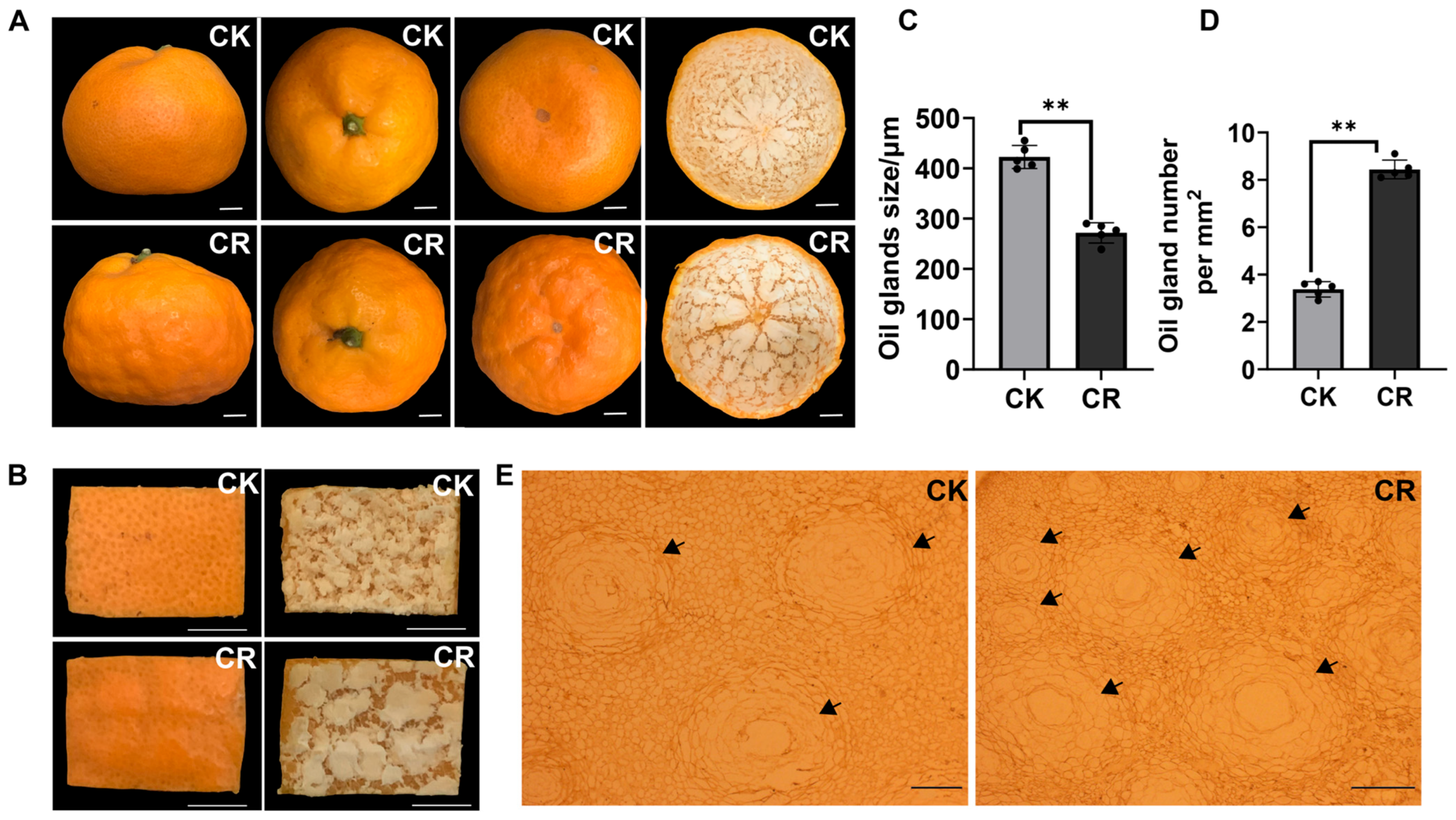 - Huang, S.; Yang, X.; Wang, T.; Li, H.; Deng, L.; Bi, X.; Hu, J.; Gong, Y.; Li, Y.; Qin, Z. Physiological Mechanisms of Citrus Fruit Cracking: Study on Cell Wall Components, Osmoregulatory Substances, and Antioxidant Enzyme Activities. Plants 2024, 13, 257. [Google Scholar] [CrossRef] [PubMed]