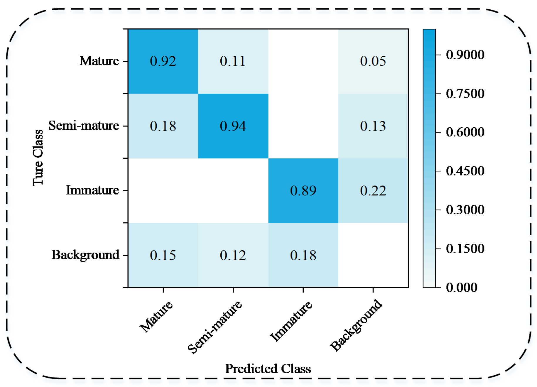 Figure 11. Confusion matrix of BMDNet-YOLO on the blueberry dataset.